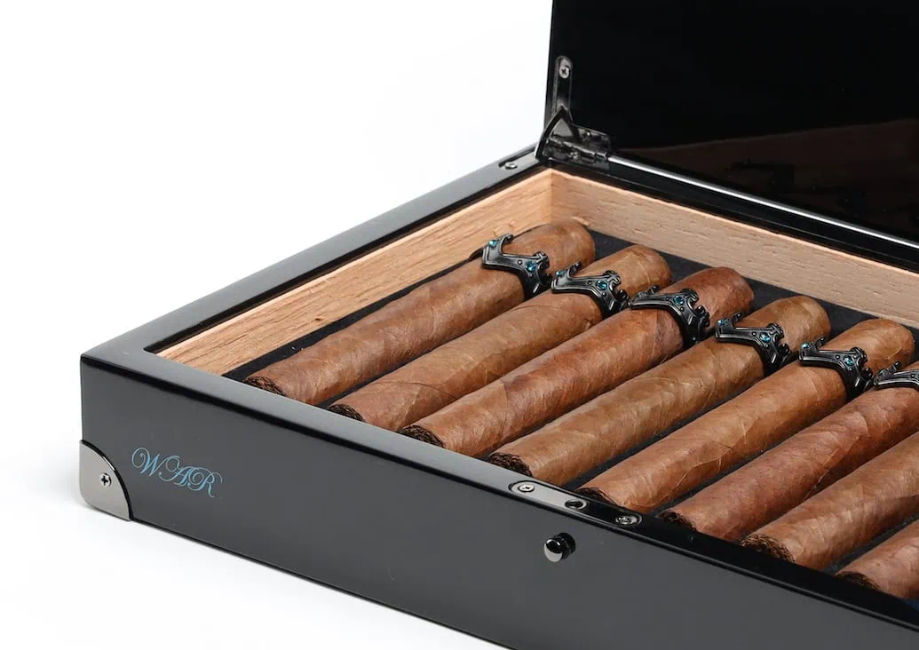War, Vicente’s 2nd Royalty line cigar, symbolizes a king leading the army into war while wearing a black crown with blue sapphires. Vicente’s War, a medium strength cigar wrapped with a Cameroon wrapper, provides a very unique, deeper and more profound flavor profile.